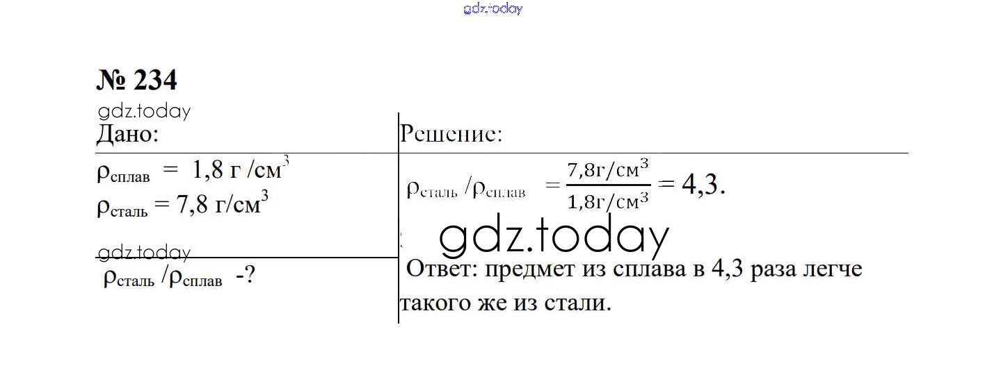 На страницах сайта gdz.today вы найдете учебный и вспомогательный материал, направленный на улучшения знаний школьной программы. ГДЗ - онлайн мир знаний Взаимодействие тел Решение. 7 класс 234 Сборнику задач по Физике для 7-9 класса Перышкин, Лонцова Экзамен УМК 2016