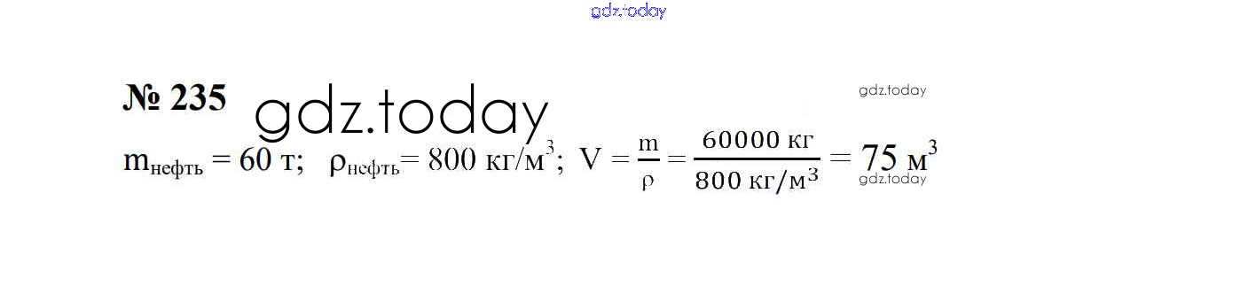 Ответы к Взаимодействие тел Решение. 7 класс 235 Сборнику задач по Физике для 7-9 класса Перышкин, Лонцова Экзамен УМК 2016