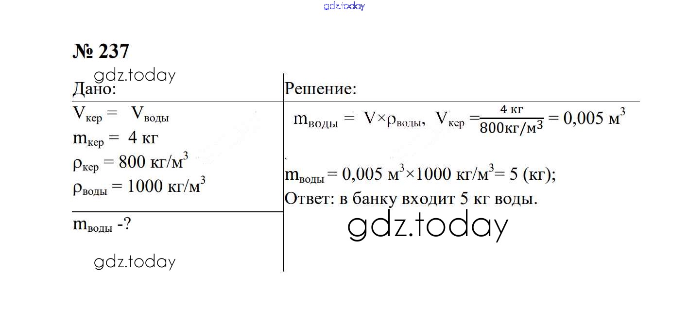 Ответы к Взаимодействие тел Решение. 7 класс 237 Сборнику задач по Физике для 7-9 класса Перышкин, Лонцова Экзамен УМК 2016