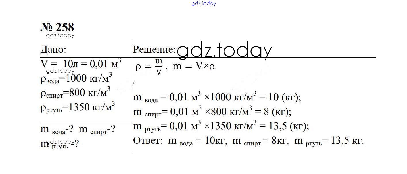 На страницах сайта gdz.today вы найдете учебный и вспомогательный материал, направленный на улучшения знаний школьной программы. ГДЗ - онлайн мир знаний Взаимодействие тел Решение. 7 класс 258 Сборнику задач по Физике для 7-9 класса Перышкин, Лонцова Экзамен УМК 2016