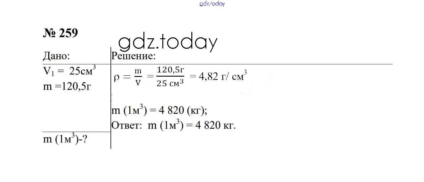 Ответы к Взаимодействие тел Решение. 7 класс 259 Сборнику задач по Физике для 7-9 класса Перышкин, Лонцова Экзамен УМК 2016