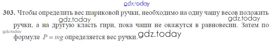 На страницах сайта gdz.today вы найдете учебный и вспомогательный материал, направленный на улучшения знаний школьной программы. ГДЗ - онлайн мир знаний Взаимодействие тел Решение 7 класс 303 Сборнику задач по Физике для 7-9 класса Перышкин, Лонцова Экзамен УМК 2016