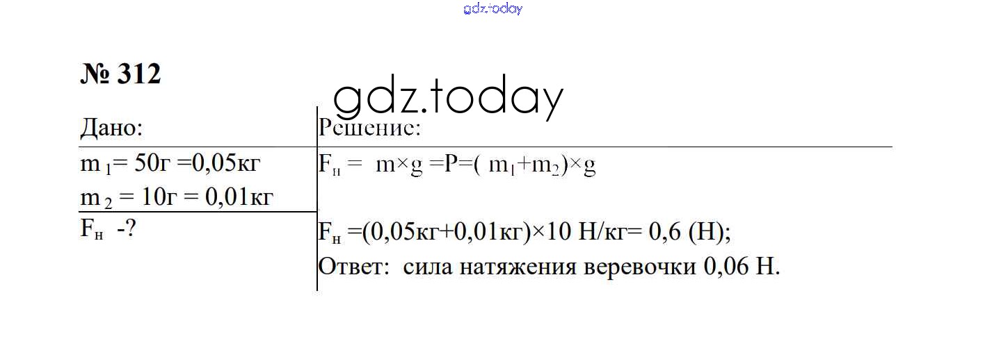 На страницах сайта gdz.today вы найдете учебный и вспомогательный материал, направленный на улучшения знаний школьной программы. ГДЗ - онлайн мир знаний Взаимодействие тел Решение. 7 класс 312 Сборнику задач по Физике для 7-9 класса Перышкин, Лонцова Экзамен УМК 2016