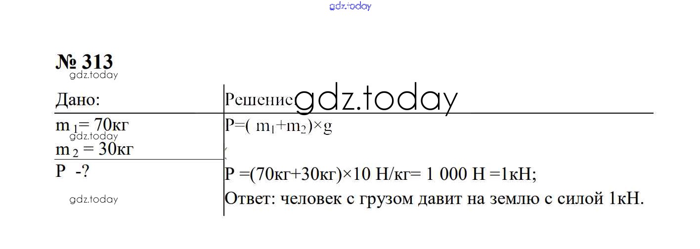 Ответы к Взаимодействие тел Решение. 7 класс 313 Сборнику задач по Физике для 7-9 класса Перышкин, Лонцова Экзамен УМК 2016