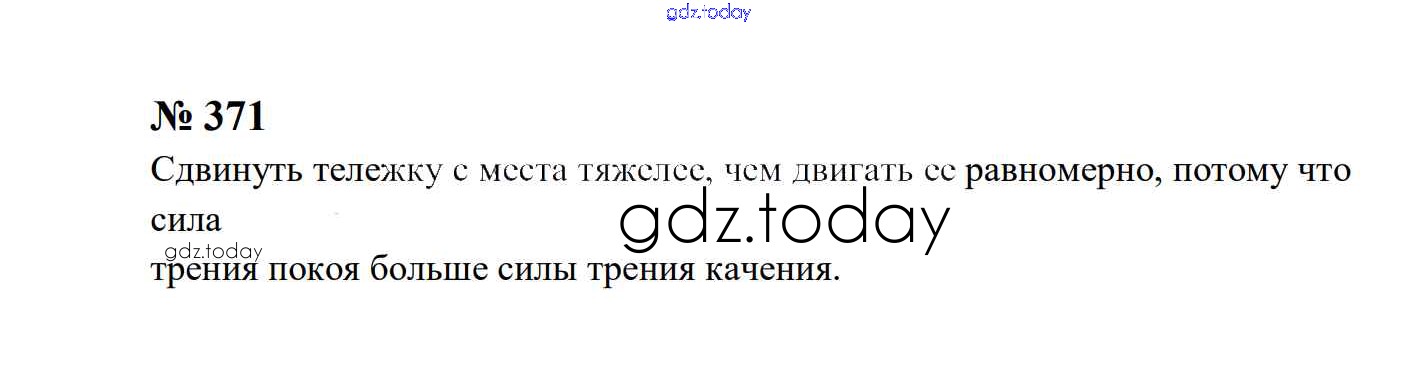 На страницах сайта gdz.today вы найдете учебный и вспомогательный материал, направленный на улучшения знаний школьной программы. ГДЗ - онлайн мир знаний Взаимодействие тел Решение. 7 класс 371 Сборнику задач по Физике для 7-9 класса Перышкин, Лонцова Экзамен УМК 2016