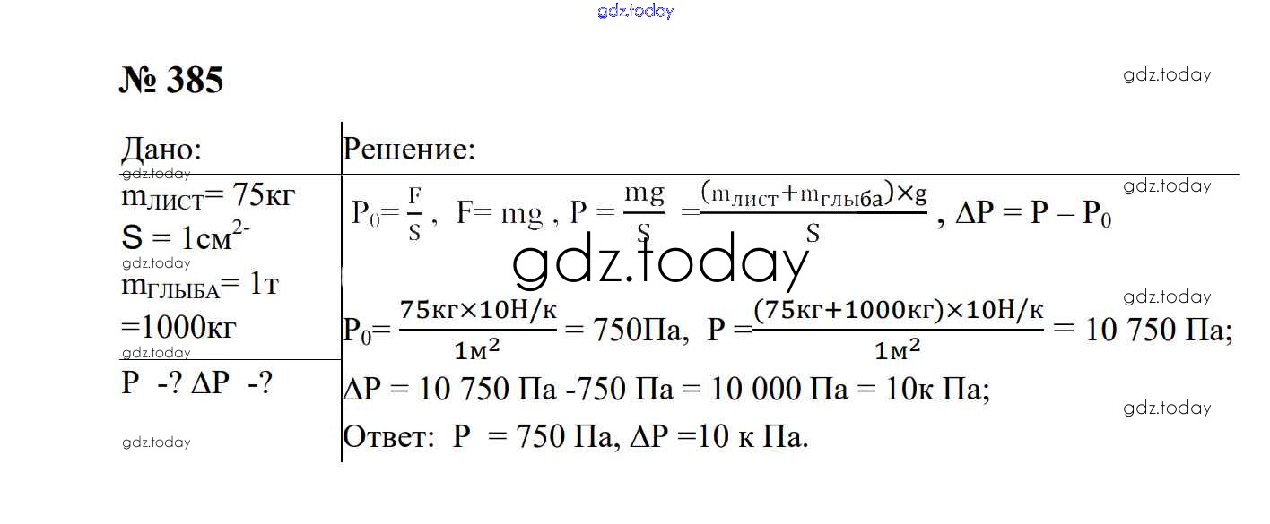 На страницах сайта gdz.today вы найдете учебный и вспомогательный материал, направленный на улучшения знаний школьной программы. ГДЗ - онлайн мир знаний Давление твердых тел, жидкостей и газов Решение. 7 класс 385 Сборнику задач по Физике для 7-9 класса Перышкин, Лонцова Экзамен УМК 2016