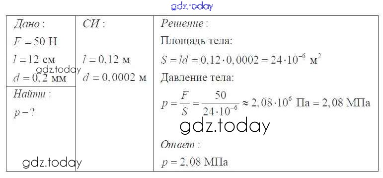 На страницах сайта gdz.today вы найдете учебный и вспомогательный материал, направленный на улучшения знаний школьной программы. ГДЗ - онлайн мир знаний Давление твердых тел, жидкостей и газов Решение 7 класс 393 Сборнику задач по Физике для 7-9 класса Перышкин, Лонцова Экзамен УМК 2016
