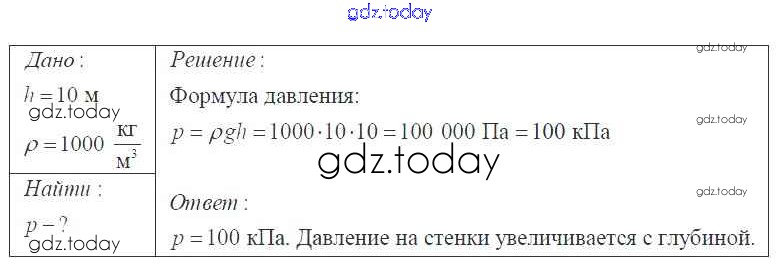 На страницах сайта gdz.today вы найдете учебный и вспомогательный материал, направленный на улучшения знаний школьной программы. ГДЗ - онлайн мир знаний Давление твердых тел, жидкостей и газов Решение 7 класс 412 Сборнику задач по Физике для 7-9 класса Перышкин, Лонцова Экзамен УМК 2016