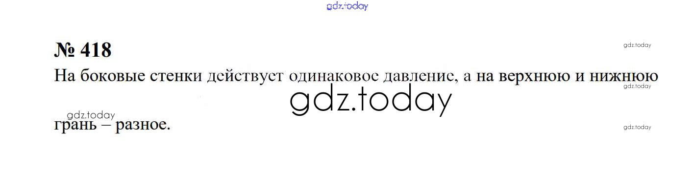 На страницах сайта gdz.today вы найдете учебный и вспомогательный материал, направленный на улучшения знаний школьной программы. ГДЗ - онлайн мир знаний Давление твердых тел, жидкостей и газов Решение. 7 класс 418 Сборнику задач по Физике для 7-9 класса Перышкин, Лонцова Экзамен УМК 2016