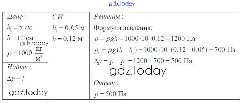 На страницах сайта gdz.today вы найдете учебный и вспомогательный материал, направленный на улучшения знаний школьной программы. ГДЗ - онлайн мир знаний Давление твердых тел, жидкостей и газов Решение 7 класс 419 Сборнику задач по Физике для 7-9 класса Перышкин, Лонцова Экзамен УМК 2016