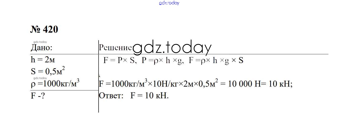 На страницах сайта gdz.today вы найдете учебный и вспомогательный материал, направленный на улучшения знаний школьной программы. ГДЗ - онлайн мир знаний Давление твердых тел, жидкостей и газов Решение. 7 класс 420 Сборнику задач по Физике для 7-9 класса Перышкин, Лонцова Экзамен УМК 2016