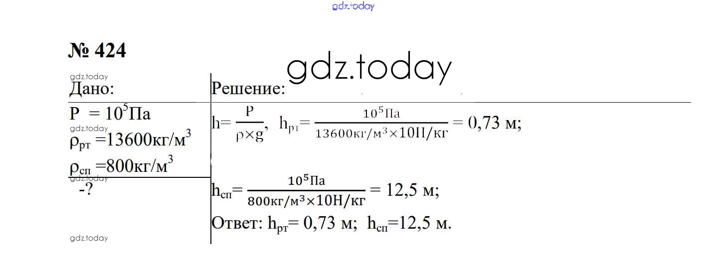 На страницах сайта gdz.today вы найдете учебный и вспомогательный материал, направленный на улучшения знаний школьной программы. ГДЗ - онлайн мир знаний Давление твердых тел, жидкостей и газов Решение. 7 класс 424 Сборнику задач по Физике для 7-9 класса Перышкин, Лонцова Экзамен УМК 2016