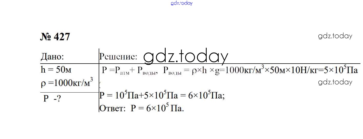 На страницах сайта gdz.today вы найдете учебный и вспомогательный материал, направленный на улучшения знаний школьной программы. ГДЗ - онлайн мир знаний Давление твердых тел, жидкостей и газов Решение. 7 класс 427 Сборнику задач по Физике для 7-9 класса Перышкин, Лонцова Экзамен УМК 2016