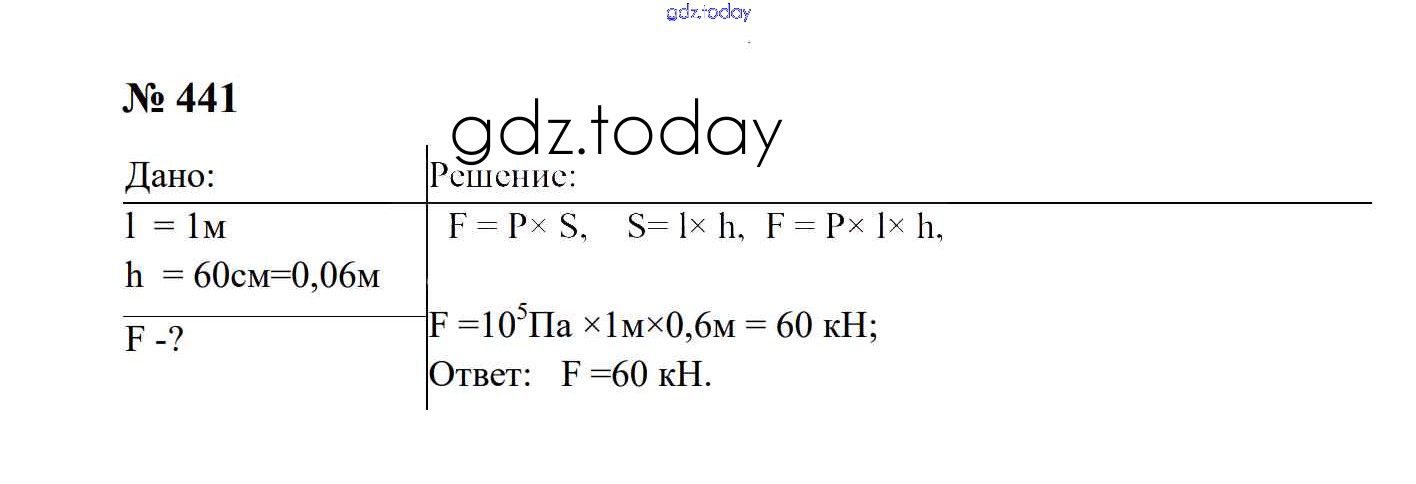 На страницах сайта gdz.today вы найдете учебный и вспомогательный материал, направленный на улучшения знаний школьной программы. ГДЗ - онлайн мир знаний Давление твердых тел, жидкостей и газов Решение. 7 класс 441 Сборнику задач по Физике для 7-9 класса Перышкин, Лонцова Экзамен УМК 2016