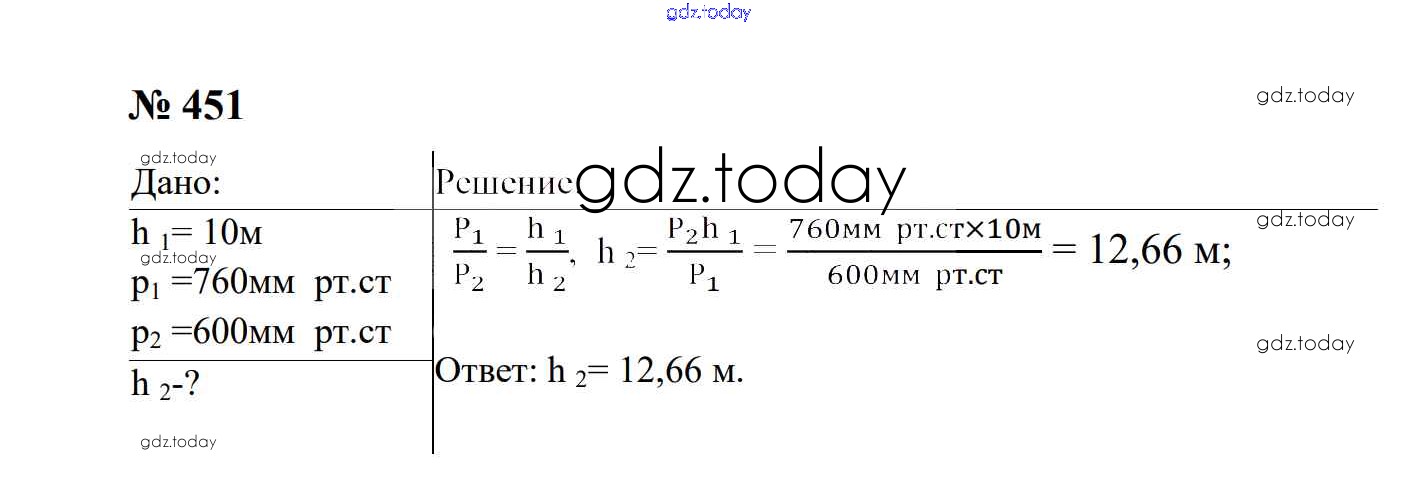 На страницах сайта gdz.today вы найдете учебный и вспомогательный материал, направленный на улучшения знаний школьной программы. ГДЗ - онлайн мир знаний Давление твердых тел, жидкостей и газов Решение. 7 класс 451 Сборнику задач по Физике для 7-9 класса Перышкин, Лонцова Экзамен УМК 2016
