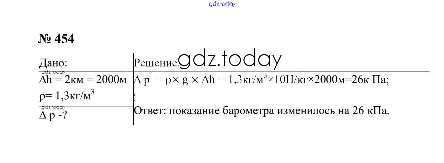 На страницах сайта gdz.today вы найдете учебный и вспомогательный материал, направленный на улучшения знаний школьной программы. ГДЗ - онлайн мир знаний Давление твердых тел, жидкостей и газов Решение. 7 класс 454 Сборнику задач по Физике для 7-9 класса Перышкин, Лонцова Экзамен УМК 2016