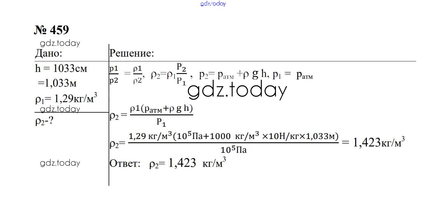 На страницах сайта gdz.today вы найдете учебный и вспомогательный материал, направленный на улучшения знаний школьной программы. ГДЗ - онлайн мир знаний Давление твердых тел, жидкостей и газов Решение. 7 класс 459 Сборнику задач по Физике для 7-9 класса Перышкин, Лонцова Экзамен УМК 2016