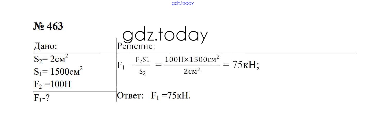 На страницах сайта gdz.today вы найдете учебный и вспомогательный материал, направленный на улучшения знаний школьной программы. ГДЗ - онлайн мир знаний Давление твердых тел, жидкостей и газов Решение. 7 класс 463 Сборнику задач по Физике для 7-9 класса Перышкин, Лонцова Экзамен УМК 2016