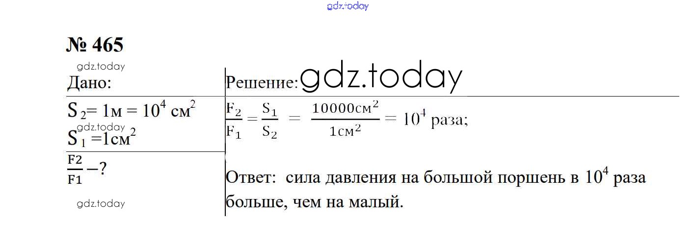 На страницах сайта gdz.today вы найдете учебный и вспомогательный материал, направленный на улучшения знаний школьной программы. ГДЗ - онлайн мир знаний Давление твердых тел, жидкостей и газов Решение. 7 класс 465 Сборнику задач по Физике для 7-9 класса Перышкин, Лонцова Экзамен УМК 2016