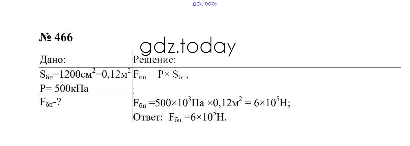 На страницах сайта gdz.today вы найдете учебный и вспомогательный материал, направленный на улучшения знаний школьной программы. ГДЗ - онлайн мир знаний Давление твердых тел, жидкостей и газов Решение. 7 класс 466 Сборнику задач по Физике для 7-9 класса Перышкин, Лонцова Экзамен УМК 2016