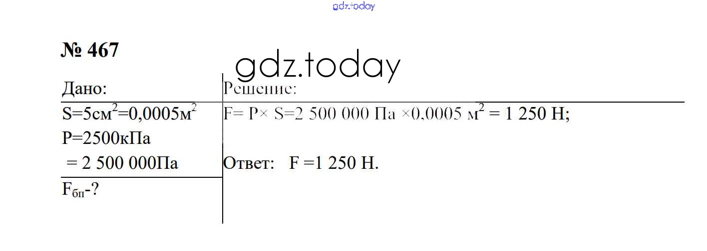 На страницах сайта gdz.today вы найдете учебный и вспомогательный материал, направленный на улучшения знаний школьной программы. ГДЗ - онлайн мир знаний Давление твердых тел, жидкостей и газов Решение. 7 класс 467 Сборнику задач по Физике для 7-9 класса Перышкин, Лонцова Экзамен УМК 2016