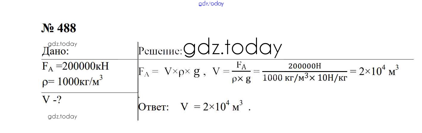 На страницах сайта gdz.today вы найдете учебный и вспомогательный материал, направленный на улучшения знаний школьной программы. ГДЗ - онлайн мир знаний Давление твердых тел, жидкостей и газов Решение. 7 класс 488 Сборнику задач по Физике для 7-9 класса Перышкин, Лонцова Экзамен УМК 2016