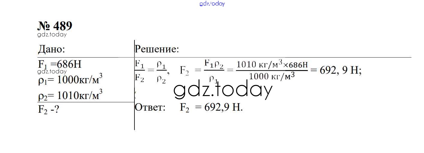 На страницах сайта gdz.today вы найдете учебный и вспомогательный материал, направленный на улучшения знаний школьной программы. ГДЗ - онлайн мир знаний Давление твердых тел, жидкостей и газов Решение. 7 класс 489 Сборнику задач по Физике для 7-9 класса Перышкин, Лонцова Экзамен УМК 2016