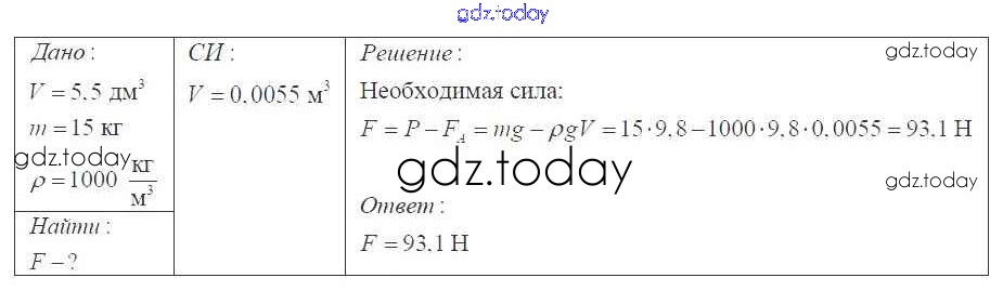 На страницах сайта gdz.today вы найдете учебный и вспомогательный материал, направленный на улучшения знаний школьной программы. ГДЗ - онлайн мир знаний Давление твердых тел, жидкостей и газов Решение 7 класс 494 Сборнику задач по Физике для 7-9 класса Перышкин, Лонцова Экзамен УМК 2016