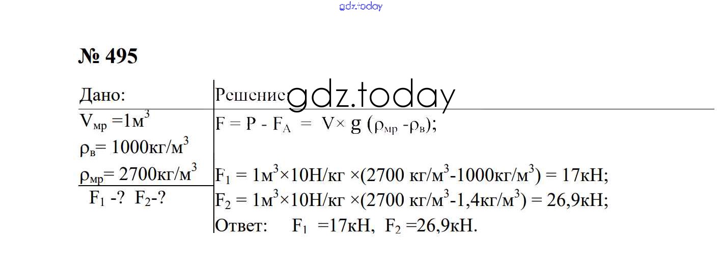 На страницах сайта gdz.today вы найдете учебный и вспомогательный материал, направленный на улучшения знаний школьной программы. ГДЗ - онлайн мир знаний Давление твердых тел, жидкостей и газов Решение. 7 класс 495 Сборнику задач по Физике для 7-9 класса Перышкин, Лонцова Экзамен УМК 2016
