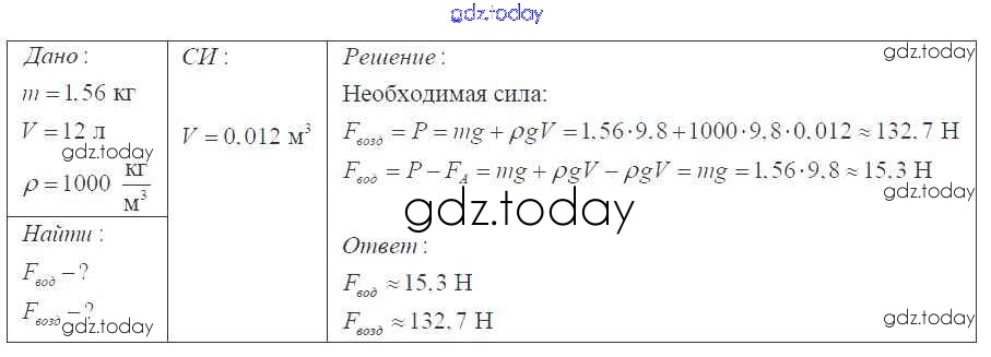 На страницах сайта gdz.today вы найдете учебный и вспомогательный материал, направленный на улучшения знаний школьной программы. ГДЗ - онлайн мир знаний Давление твердых тел, жидкостей и газов Решение 7 класс 498 Сборнику задач по Физике для 7-9 класса Перышкин, Лонцова Экзамен УМК 2016