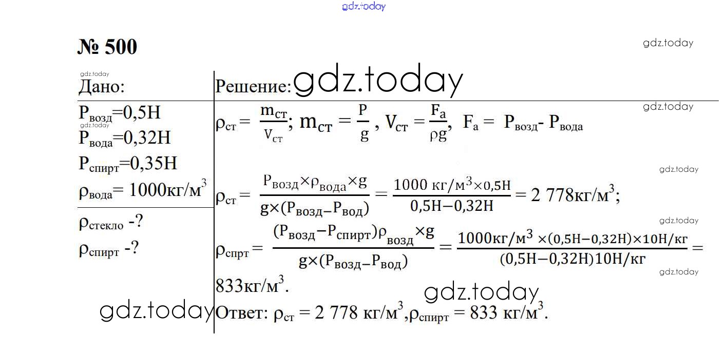 На страницах сайта gdz.today вы найдете учебный и вспомогательный материал, направленный на улучшения знаний школьной программы. ГДЗ - онлайн мир знаний Давление твердых тел, жидкостей и газов Решение. 7 класс 500 Сборнику задач по Физике для 7-9 класса Перышкин, Лонцова Экзамен УМК 2016