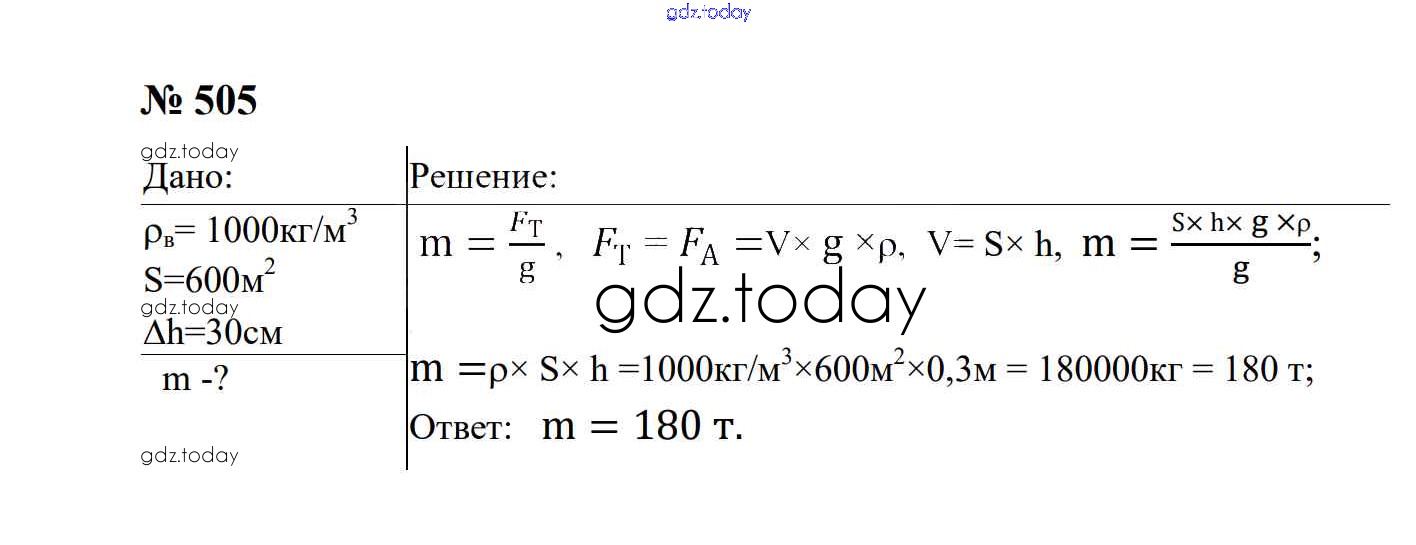 На страницах сайта gdz.today вы найдете учебный и вспомогательный материал, направленный на улучшения знаний школьной программы. ГДЗ - онлайн мир знаний Давление твердых тел, жидкостей и газов Решение. 7 класс 505 Сборнику задач по Физике для 7-9 класса Перышкин, Лонцова Экзамен УМК 2016