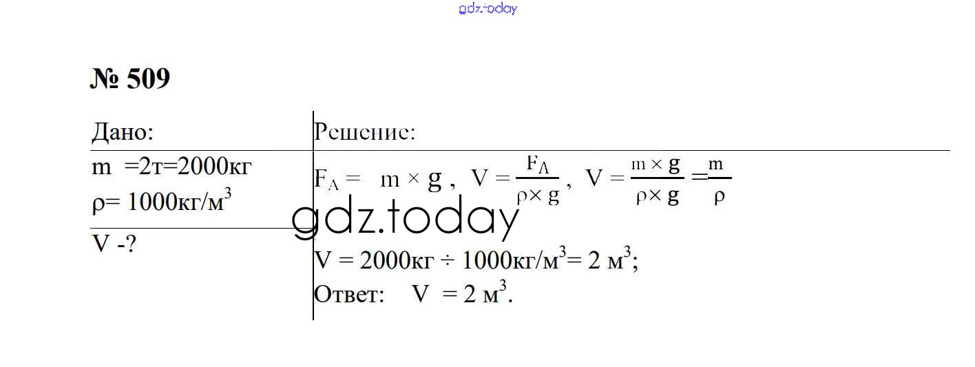 На страницах сайта gdz.today вы найдете учебный и вспомогательный материал, направленный на улучшения знаний школьной программы. ГДЗ - онлайн мир знаний Давление твердых тел, жидкостей и газов Решение. 7 класс 509 Сборнику задач по Физике для 7-9 класса Перышкин, Лонцова Экзамен УМК 2016