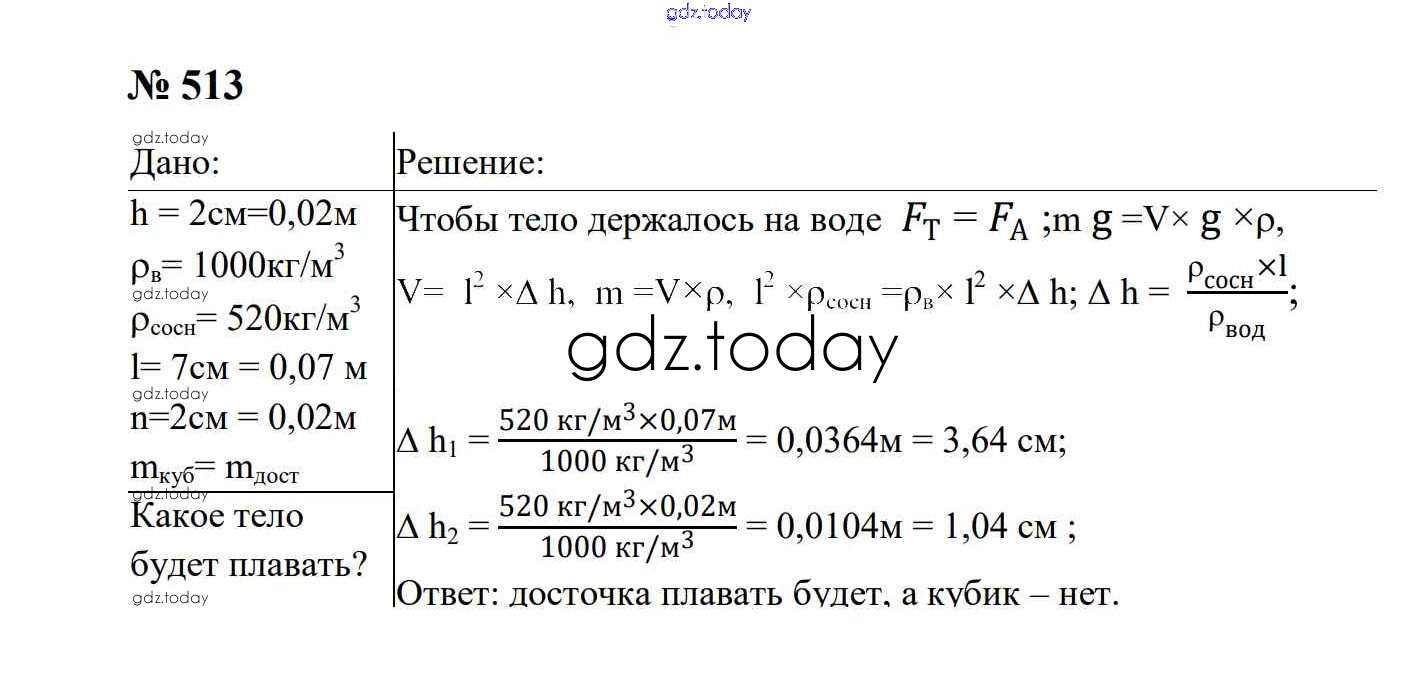 На страницах сайта gdz.today вы найдете учебный и вспомогательный материал, направленный на улучшения знаний школьной программы. ГДЗ - онлайн мир знаний Давление твердых тел, жидкостей и газов Решение. 7 класс 513 Сборнику задач по Физике для 7-9 класса Перышкин, Лонцова Экзамен УМК 2016