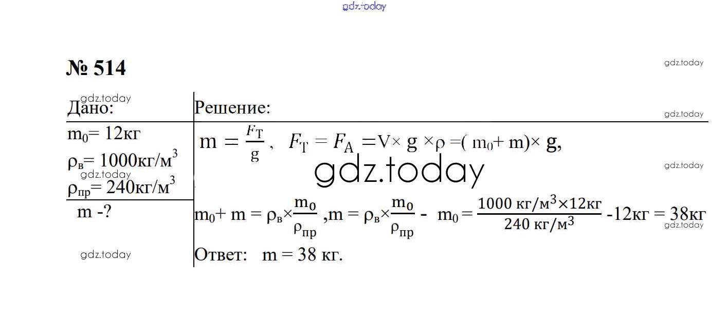 На страницах сайта gdz.today вы найдете учебный и вспомогательный материал, направленный на улучшения знаний школьной программы. ГДЗ - онлайн мир знаний Давление твердых тел, жидкостей и газов Решение. 7 класс 514 Сборнику задач по Физике для 7-9 класса Перышкин, Лонцова Экзамен УМК 2016