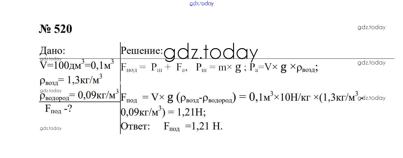 На страницах сайта gdz.today вы найдете учебный и вспомогательный материал, направленный на улучшения знаний школьной программы. ГДЗ - онлайн мир знаний Давление твердых тел, жидкостей и газов Решение. 7 класс 520 Сборнику задач по Физике для 7-9 класса Перышкин, Лонцова Экзамен УМК 2016