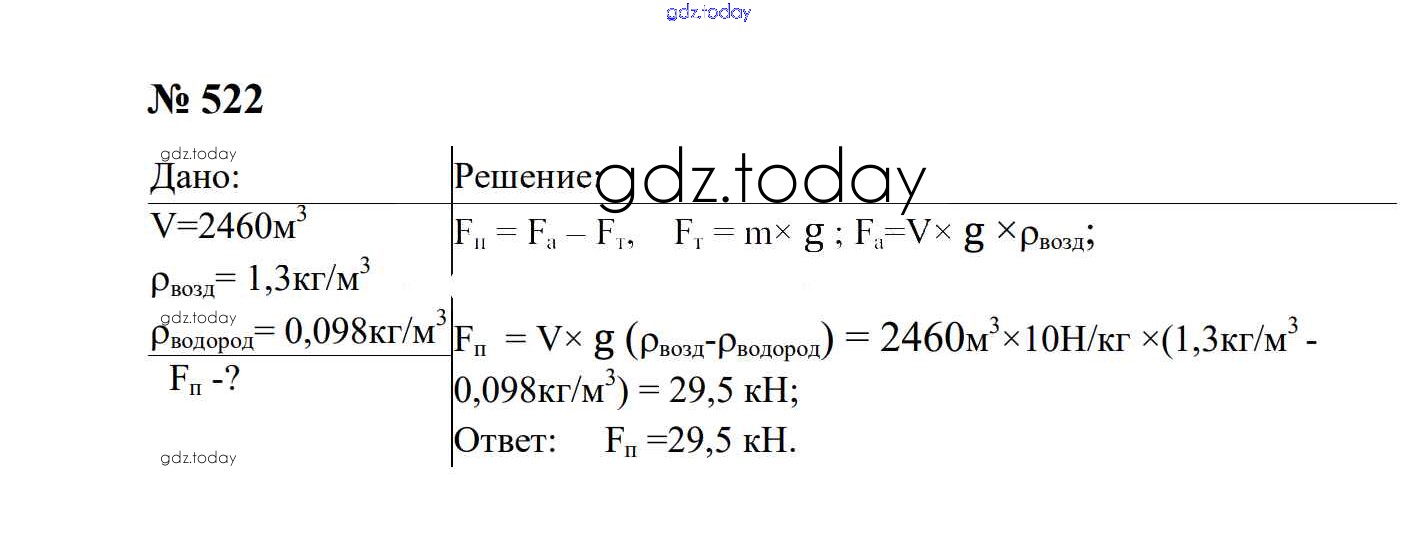 На страницах сайта gdz.today вы найдете учебный и вспомогательный материал, направленный на улучшения знаний школьной программы. ГДЗ - онлайн мир знаний Давление твердых тел, жидкостей и газов Решение. 7 класс 522 Сборнику задач по Физике для 7-9 класса Перышкин, Лонцова Экзамен УМК 2016