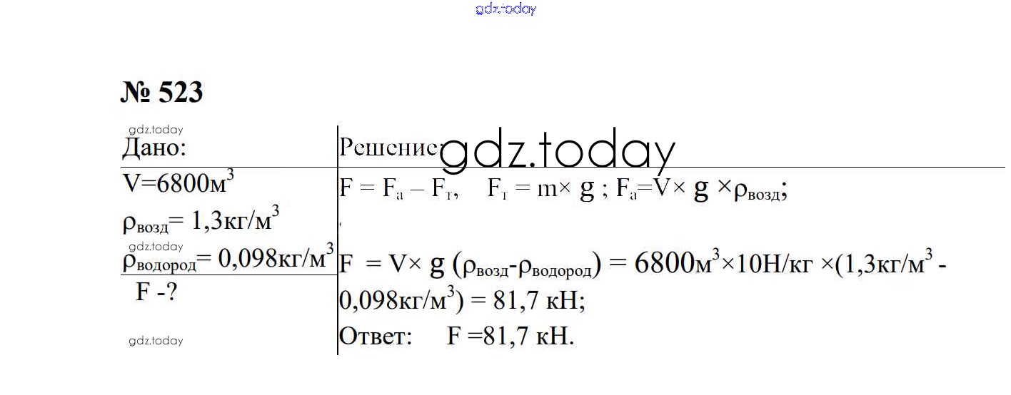 На страницах сайта gdz.today вы найдете учебный и вспомогательный материал, направленный на улучшения знаний школьной программы. ГДЗ - онлайн мир знаний Давление твердых тел, жидкостей и газов Решение. 7 класс 523 Сборнику задач по Физике для 7-9 класса Перышкин, Лонцова Экзамен УМК 2016