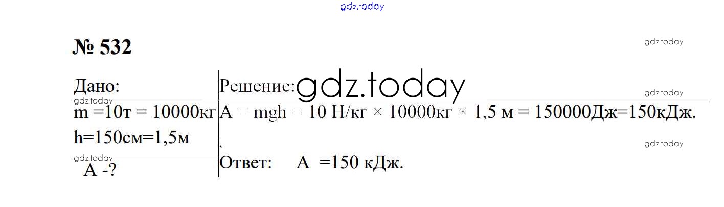На страницах сайта gdz.today вы найдете учебный и вспомогательный материал, направленный на улучшения знаний школьной программы. ГДЗ - онлайн мир знаний Работа и мощность. Энергия Решение. 7 класс 532 Сборнику задач по Физике для 7-9 класса Перышкин, Лонцова Экзамен УМК 2016