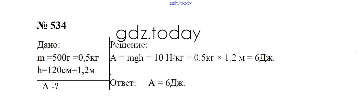 Ответы к Работа и мощность. Энергия Решение. 7 класс 534 Сборнику задач по Физике для 7-9 класса Перышкин, Лонцова Экзамен УМК 2016