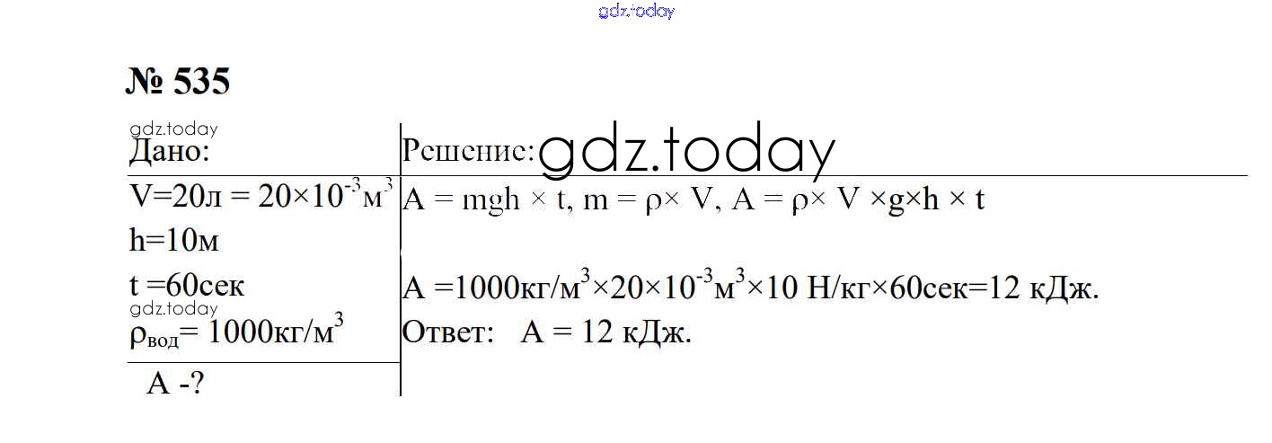На страницах сайта gdz.today вы найдете учебный и вспомогательный материал, направленный на улучшения знаний школьной программы. ГДЗ - онлайн мир знаний Работа и мощность. Энергия Решение. 7 класс 535 Сборнику задач по Физике для 7-9 класса Перышкин, Лонцова Экзамен УМК 2016