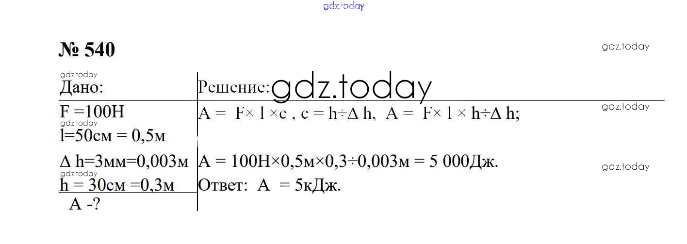 На страницах сайта gdz.today вы найдете учебный и вспомогательный материал, направленный на улучшения знаний школьной программы. ГДЗ - онлайн мир знаний Работа и мощность. Энергия Решение. 7 класс 540 Сборнику задач по Физике для 7-9 класса Перышкин, Лонцова Экзамен УМК 2016