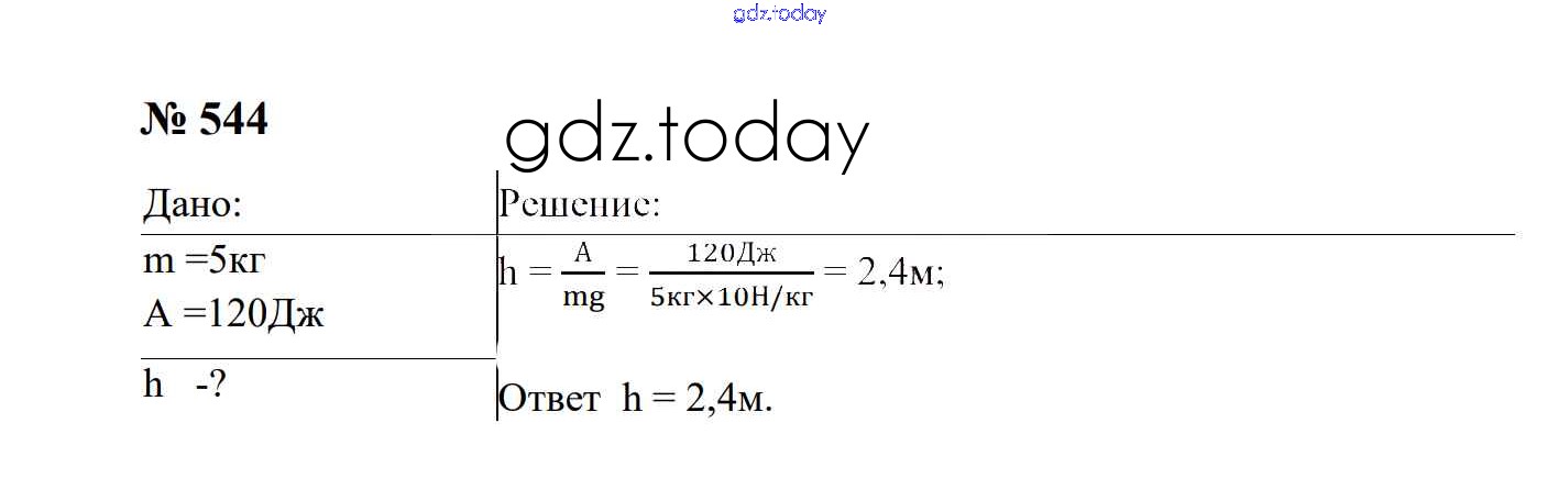 Ответы к Работа и мощность. Энергия Решение. 7 класс 544 Сборнику задач по Физике для 7-9 класса Перышкин, Лонцова Экзамен УМК 2016