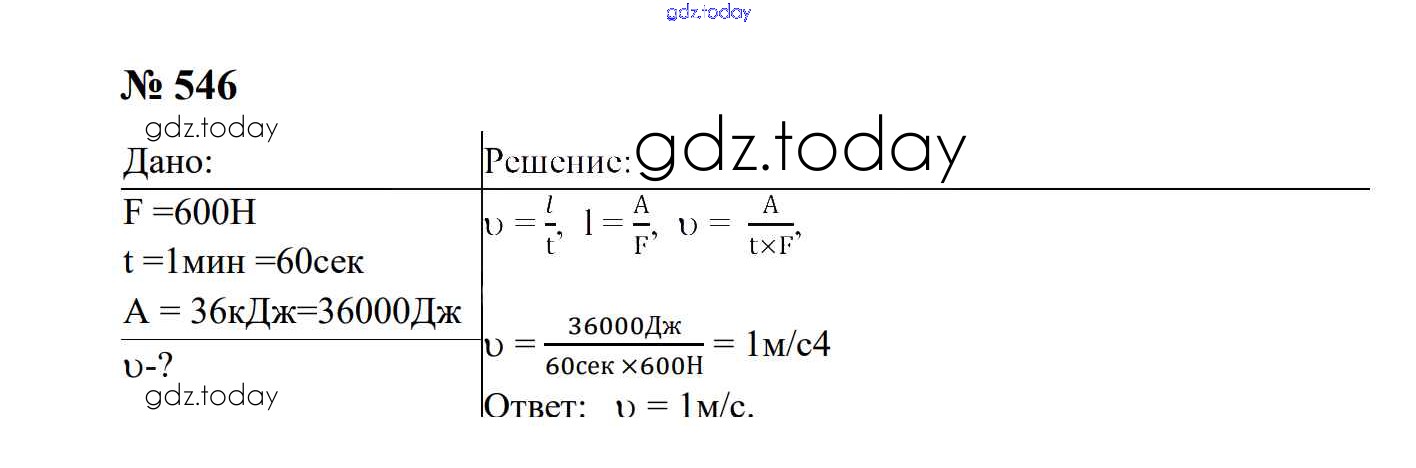 Ответы к Работа и мощность. Энергия Решение. 7 класс 546 Сборнику задач по Физике для 7-9 класса Перышкин, Лонцова Экзамен УМК 2016