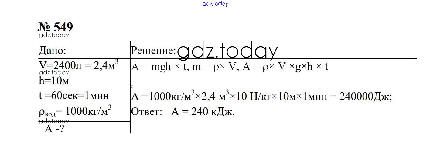 На страницах сайта gdz.today вы найдете учебный и вспомогательный материал, направленный на улучшения знаний школьной программы. ГДЗ - онлайн мир знаний Работа и мощность. Энергия Решение. 7 класс 549 Сборнику задач по Физике для 7-9 класса Перышкин, Лонцова Экзамен УМК 2016