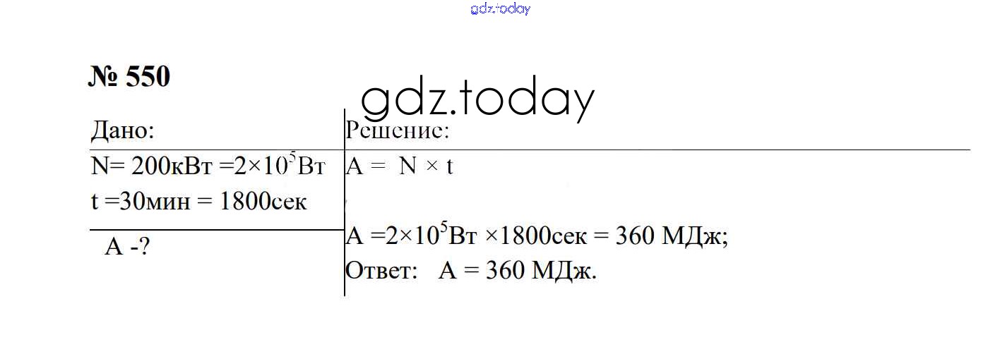 На страницах сайта gdz.today вы найдете учебный и вспомогательный материал, направленный на улучшения знаний школьной программы. ГДЗ - онлайн мир знаний Работа и мощность. Энергия Решение. 7 класс 550 Сборнику задач по Физике для 7-9 класса Перышкин, Лонцова Экзамен УМК 2016