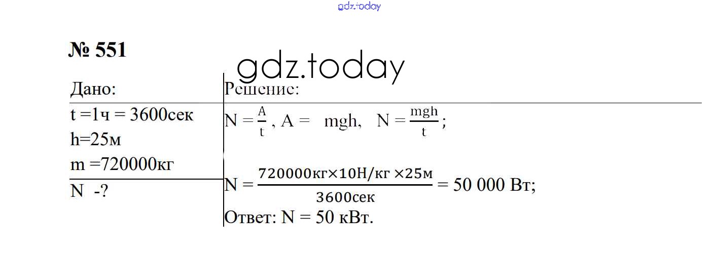 Ответы к Работа и мощность. Энергия Решение. 7 класс 551 Сборнику задач по Физике для 7-9 класса Перышкин, Лонцова Экзамен УМК 2016