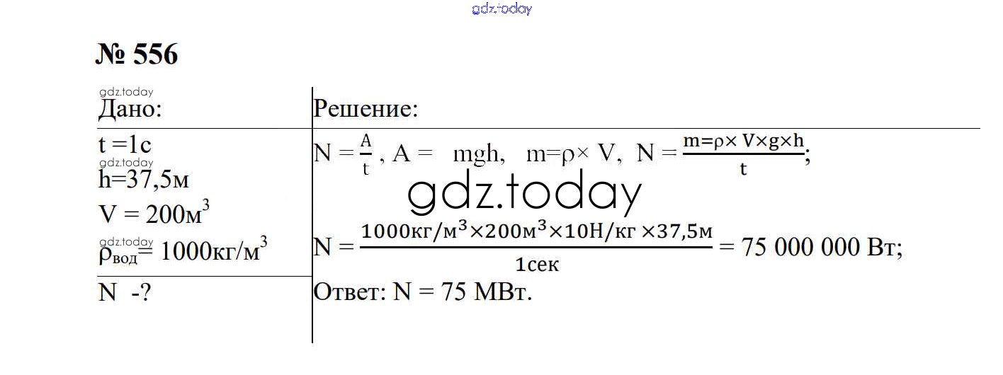На страницах сайта gdz.today вы найдете учебный и вспомогательный материал, направленный на улучшения знаний школьной программы. ГДЗ - онлайн мир знаний Работа и мощность. Энергия Решение. 7 класс 556 Сборнику задач по Физике для 7-9 класса Перышкин, Лонцова Экзамен УМК 2016