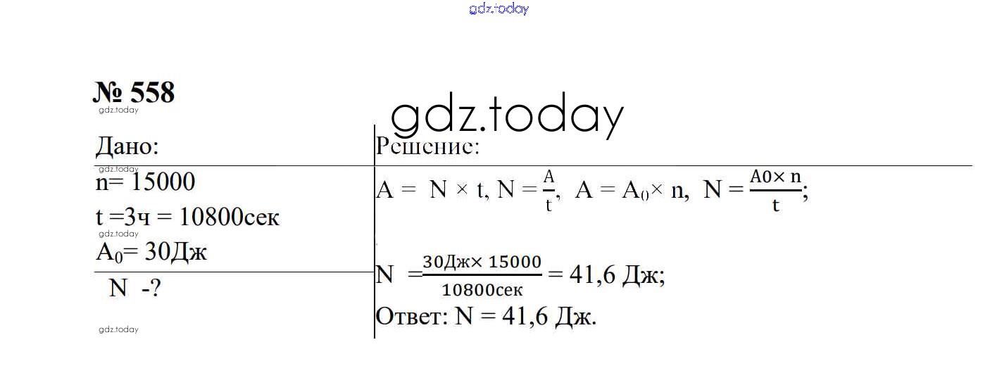 На страницах сайта gdz.today вы найдете учебный и вспомогательный материал, направленный на улучшения знаний школьной программы. ГДЗ - онлайн мир знаний Работа и мощность. Энергия Решение. 7 класс 558 Сборнику задач по Физике для 7-9 класса Перышкин, Лонцова Экзамен УМК 2016