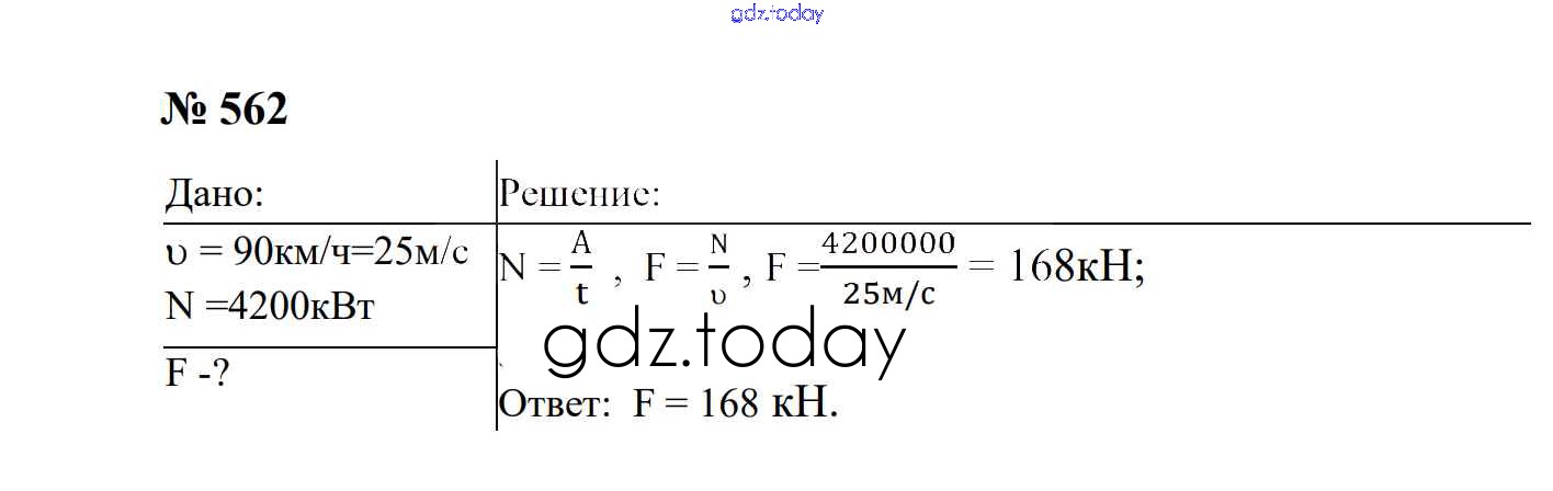 На страницах сайта gdz.today вы найдете учебный и вспомогательный материал, направленный на улучшения знаний школьной программы. ГДЗ - онлайн мир знаний Работа и мощность. Энергия Решение. 7 класс 562 Сборнику задач по Физике для 7-9 класса Перышкин, Лонцова Экзамен УМК 2016